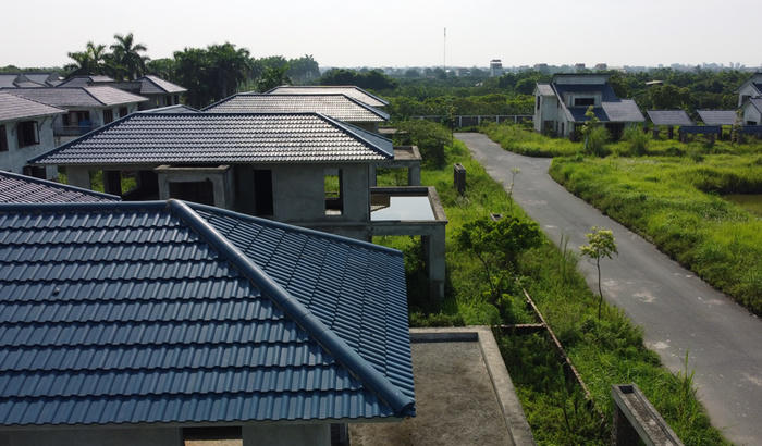 Hình ảnh hàng trăm căn biệt thự bỏ hoang, phơi mưa phơi nắng xuống cấp từng ngày, cỏ mọc um tùm che kín sân vườn lối đi, chưa biết ngày nào có người vào ở.