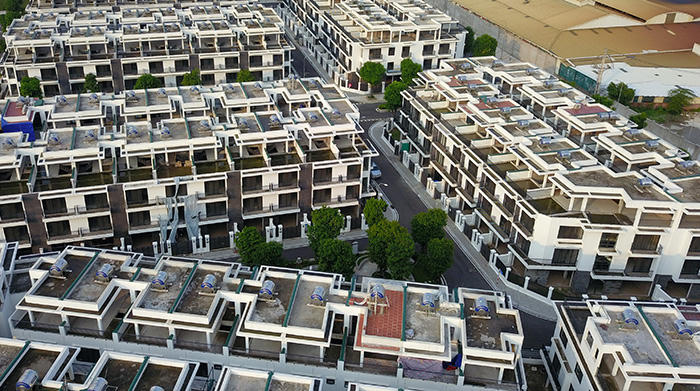 Việc chủ đầu tư xây dựng không đúng hàng trăm căn biệt thự, nhà liền kề theo quy hoạch đã duyệt có sự buông lỏng quản lý của cơ quan chức năng không? (ảnh Trần Kháng)