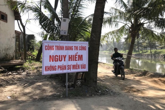 Bên ngài khu vực thi công cắm biển cấm để người ngoài không được phép vào trong. Ảnh:soha.vn