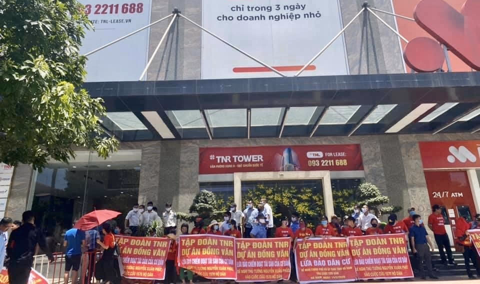 Mới đây, hàng trăm người dân đã tụ tập, căng băng rôn tại trụ sở Tập đoàn TNR ( số 54 Nguyễn Chí Thanh – Hà Nội) hô vang khẩu hiệu “Tập đoàn TNR – Dự án Đồng Văn – lừa đảo dân cư”, đồng thời lên tiếng phản ánh TNR lừa đảo, chiếm dụng hàng nghìn tỷ đồng của khách hàng.