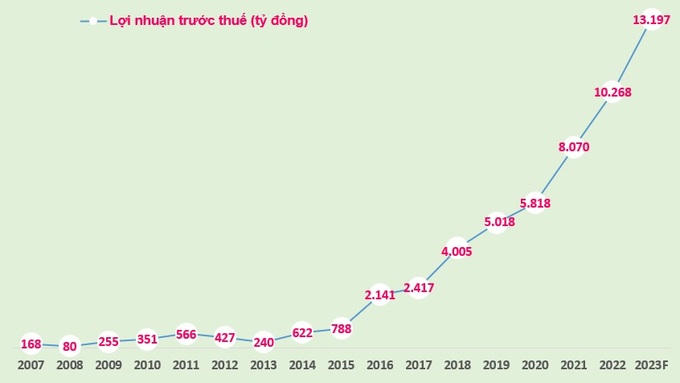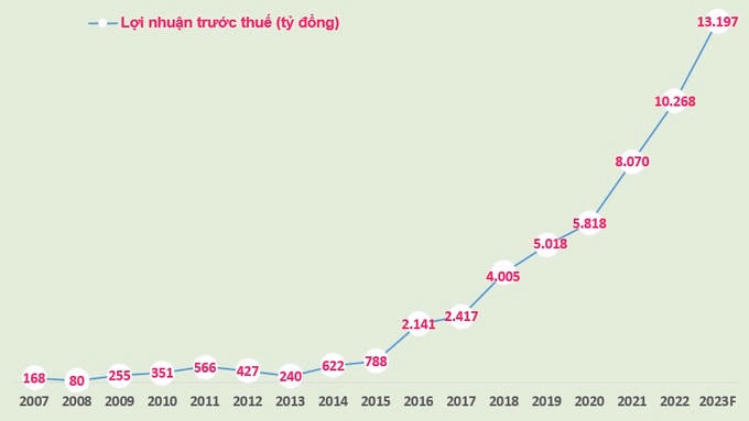 Năm 2023, lợi nhuận trước thuế tăng 29%, đạt 13.197 tỷ đồng