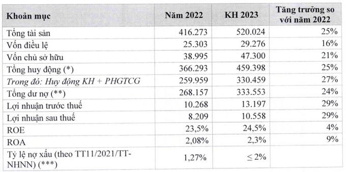 HDBank đặt kế hoạch lợi nhuận tăng 29%, đạt 13.197 tỷ đồng lợi nhuận trước thuế và 10.558 tỷ đồng lợi nhuận sau thuế. Chỉ số ROE ở mức 24,5%; ROA ở mức 2,3%.