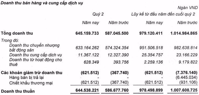 Sau khi trừ các chi phí, lãi ròng Khang Điền đạt 278,5 tỷ đồng, tăng 12%. Lũy kế 6 tháng, doanh nghiệp đạt doanh thu thuần 978,5 tỷ đồng và lãi ròng 342 tỷ đồng, lần lượt giảm 3% và giảm 24% so với cùng kỳ.