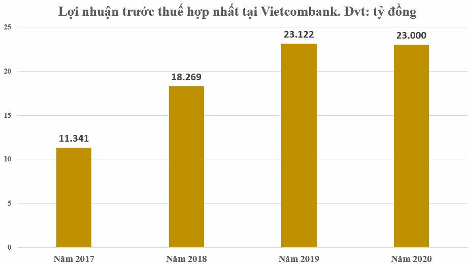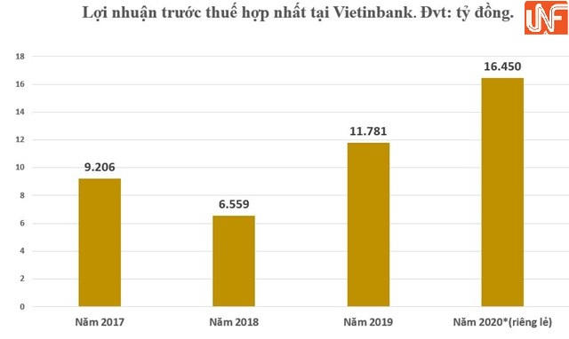 Năm 2020, Vietinbank ghi nhận lợi nhuận riêng lẻ trước thuế tăng 43% so với năm 2020. Trong khi đó, lợi nhuận tại BIDV sụt giảm và Vietcombank đi ngang.