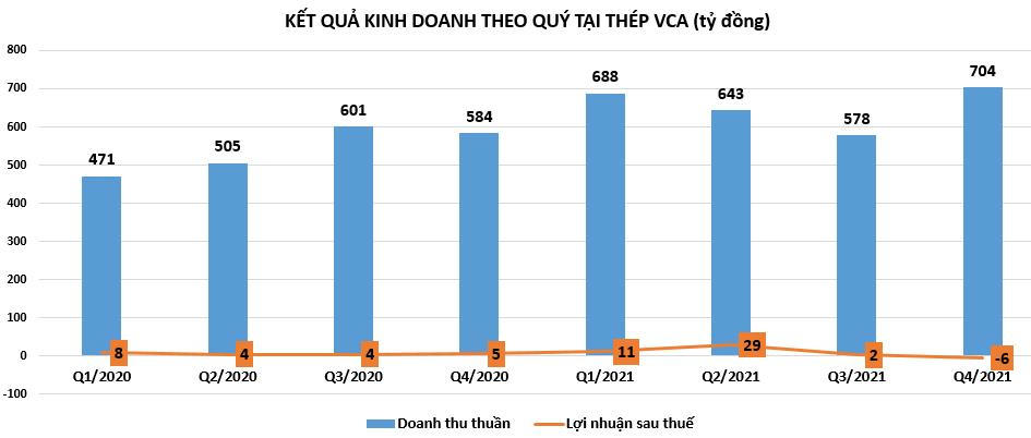 Mới đây, CTCP Thép Vicasa - Vnsteel (mã: VCA) bất ngờ báo lỗ hơn 6 tỷ đồng trong quý 4/2021, ghi nhận lần đầu tiên thua lỗ kể từ quý 1/2015.