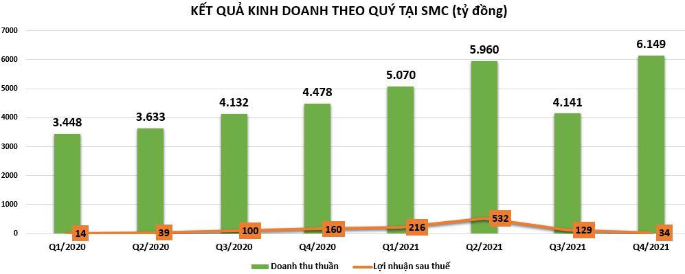 Xét cả năm 2021, nhờ kinh doanh khả quan trong 2 quý đầu năm nên SMC vẫn ghi nhận kết quả tăng trưởng tích cực khi ghi nhận doanh thu thuần đạt 21.312 tỷ đồng và lãi sau thuế đạt 903 tỷ đồng, tăng tương tăng ứng 35% và 186% so với năm 2020. Đây cũng là con số kinh doanh cao nhất từ trước tới nay của SMC.