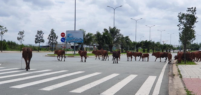 Bò thả rông trong khuôn viên dự án khu công nghệ cao