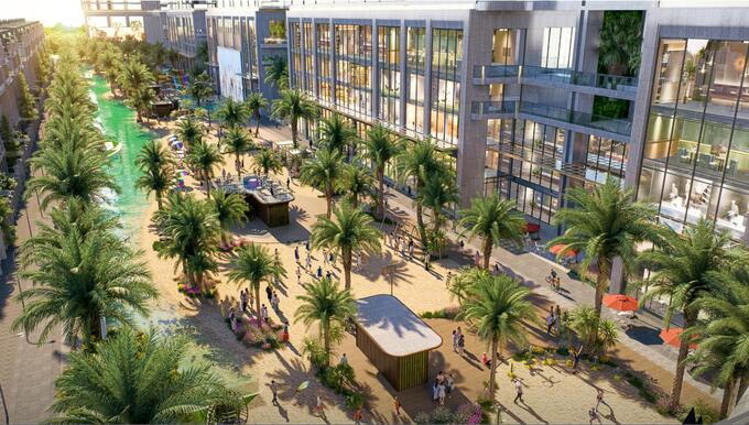 Ở tổ hợp đầu tiên, hiện ra trước mắt bạn là khung cảnh lãng mạn và khoáng đạt của biển hồ nhân tạo với sóng xanh, cát trắng, những bóng cây yên bình và hệ tiện ích giải trí, thư giãn đa thế hệ kéo dài khoảng 500m.