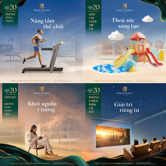 Am tường mọi nhu cầu của giới tinh anh, tại Noble Crystal Tay Ho WorldHotels Residence, nhà phát triển bất động sản Noble đã “hi sinh” diện tích thương phẩm để kiến tạo 50+ tiện ích đẳng cấp từ mặt đất lên tới tầng không, tạo nên một “resort city” có 1-0-2 tại Tây Hồ Tây để làm hài lòng cả những cư dân thượng lưu khó tính nhất. Tại đây, hệ tiện ích được quy hoạch và sắp xếp đa lớp đa tầng, vừa mang đến sự sôi động thăng hoa với những trải nghiệm vui chơi giải trí cao cấp bậc nhất; vừa thư giãn, riêng tư đến tận cùng để gia chủ có thể “sống như nghỉ dưỡng" ngay giữa lòng phố thị.