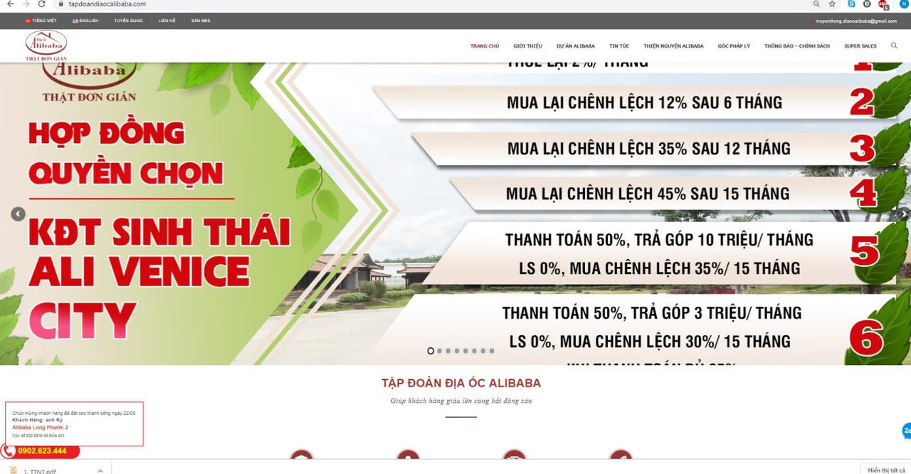Mặc dù đang trong cơn bão của dư luận và đang bị điều tra, nhưng mới đây trên trang web chính thức của mình, Địa ốc Alibaba vẫn đăng tải chính sách bán hàng, rằng sẽ thu mua lại hợp đồng với chênh lệch 12% sau 6 tháng, 35% sau 12 tháng và 45% sau 15 tháng.