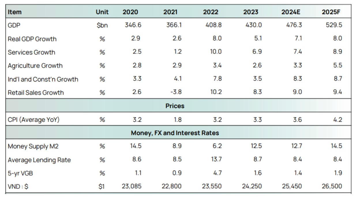 Ngoài các yếu tố vi mô, VEIL cho rằng nền tảng vĩ mô tiếp tục là bệ đỡ quan trọng. Quỹ dự báo GDP Việt Nam năm 2025 tăng trưởng 8%, lạm phát bình quân 4,2%, lãi suất cho vay ổn định quanh mức 8,4% và tỷ giá VND/USD giữ ở ngưỡng 26.500 đồng.