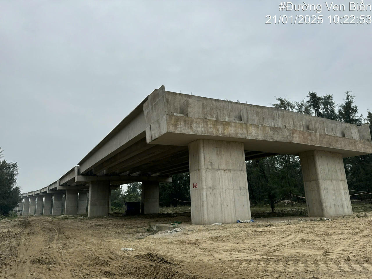 Theo Ban quản lý dự án xây dựng công trình giao thông TP. Huế, đến nay đơn vị thi công đang tập trung hoàn thiện các hạng mục cuối cùng ở hai trụ cầu T26 và T27, đây là hạng mục công trình khó thi công nhất của cầu vượt biển Thuận An.
