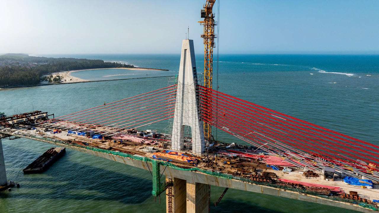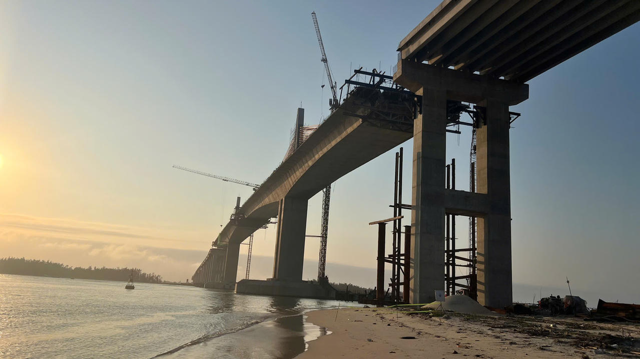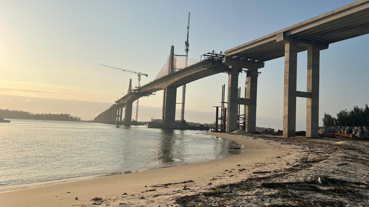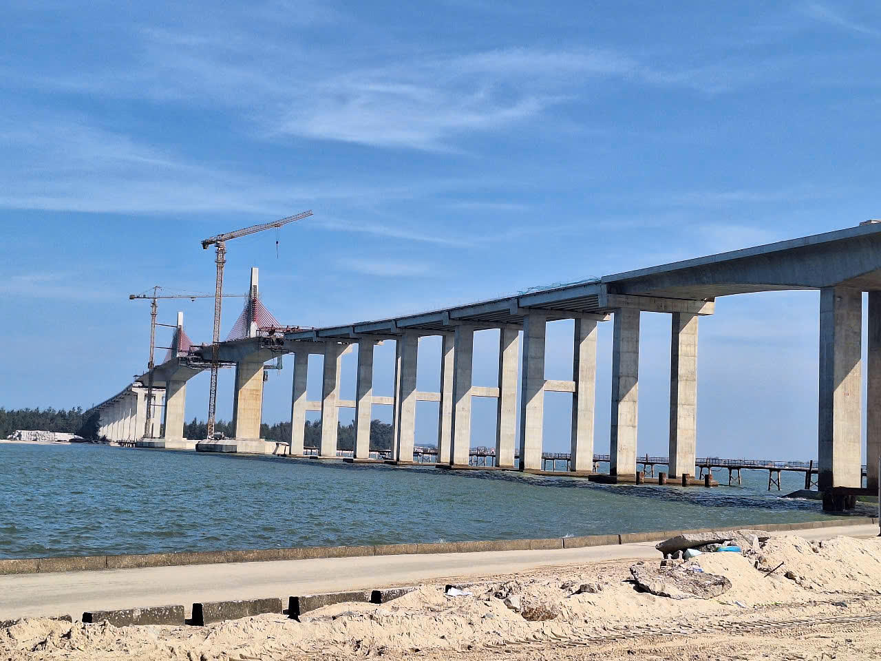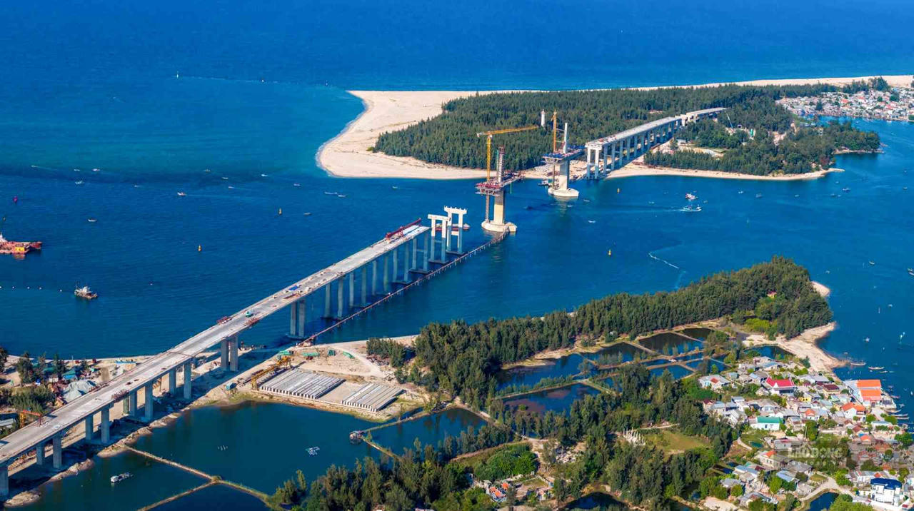 Cầu vượt cửa biển Thuận An (TP. Thừa Thiên Huế) là cầu vượt biển dài nhất miền Trung có tổng vốn đầu tư 2.400 tỷ đồng dự kiến sẽ hợp long vào 30/4, đưa vào sử dụng dịp Quốc khánh 2/9/2025.