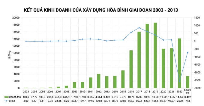 Năm 2022, với doanh thu 14.154 tỷ đồng, lần đầu tiên Xây dựng Hòa Bình báo lỗ và lỗ đến 2.572 tỷ đồng. Riêng phần trích lập dự phòng cho các khoản nợ phải thu ngắn hạn khó đòi lên đến trên 2.059 tỷ đồng.