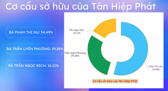 Từ khi thành lập đến nay tân Hiệp Phát đã có 43 lần thay đổi đăng ký kinh doanh. Cập nhật trước đó đến 9/9/2022 vốn điều lệ công ty là 1.706 tỷ đồng. Còn cập nhật mới nhất đến 22/9/2022 vốn điều lệ lại giảm xuống chỉ còn 276 tỷ đồng. Tuy vậy cơ cấu sở hữu không thay đổi: Bà Phạm Thị Nụ sở hữu 54,49%; bà Trần Uyên Phương sở hữu 29,38% và bà Trần Ngọc Bích sở hữu 16,13% vốn điều lệ. Tổng cộng vợ và 2 con gái ông Trần Quí Thanh nắm giữ đủ 100% vốn điều lệ của Tân Hiệp Phát.