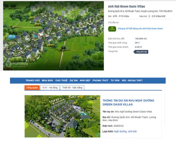 Tại kết luận thanh tra số: 67/KL-TTr ngày 26/8/2020 từng nêu rõ: “Không thực hiện quảng cáo bằng pano, áp phích và quảng cáo trên mạng Internet về khu nhà ở Green Oasis Villa tại Xóm Đồng Sầm, xã Nhuận Trạch khi chưa được cơ quan Nhà nước có thẩm quyền cho phép”. Tuy nhiên, trên thực tế, Green Oasis vẫn được quảng cáo rao bán rầm rộ trên các trang mạng.