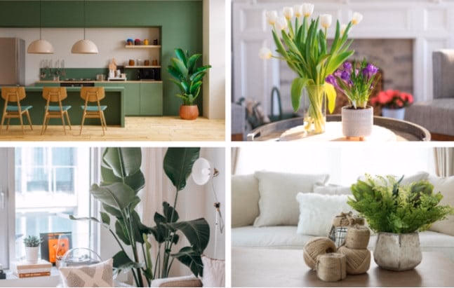 Bằng cách đặt các loại cây phong thủy lá to bản, có khả năng thanh lọc không khí vừa mang lại sự mát mẻ, nhẹ nhàng, giải tỏa căng thẳng đồng thời xua tan đi những uế khí tích tụ trong nhà.