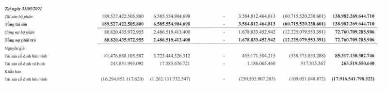 Tại ngày 31/3/2021 tổng tài sản Hòa Phát đạt 139.000 tỷ đồng, trong đó doanh thu từ kinh doanh BĐS chỉ chiếm 3.584 tỷ đồng. Đồng thời tổng nợ phải trả đạt 72.760 tỷ đồng.