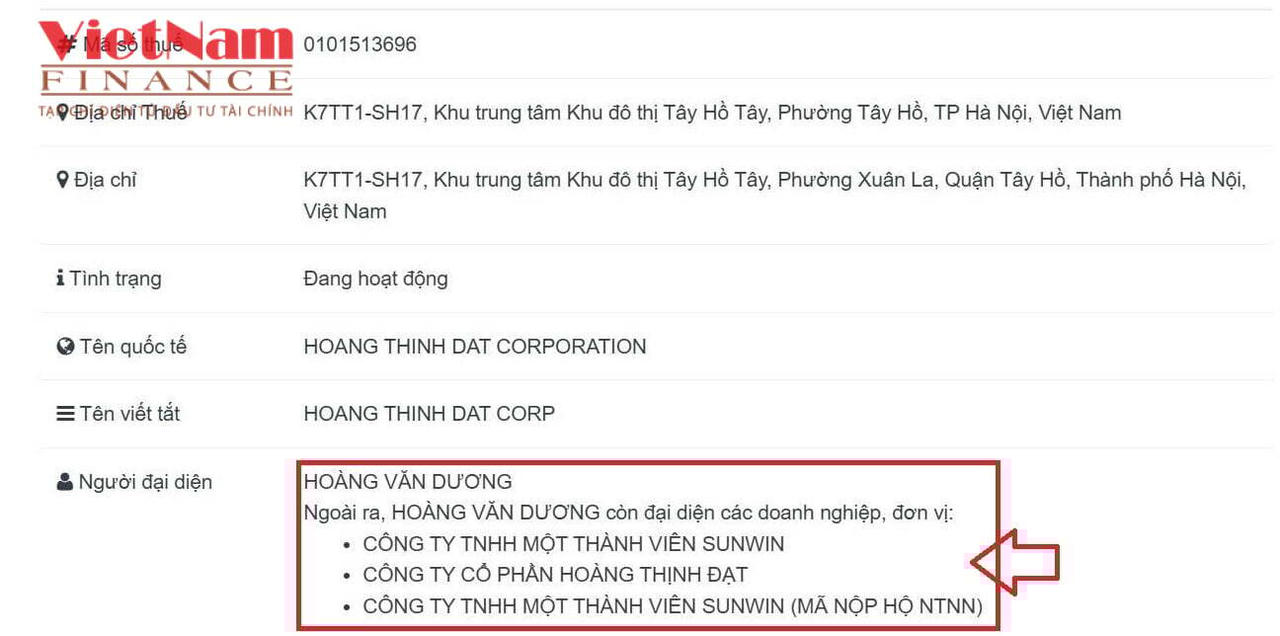 Hoàng Thịnh Đạt được thành lập ngày 5/3/2004, vốn điều lệ 638 tỷ đồng, đóng trụ sở tại tầng 9, tòa nhà VEAM Tây Hồ, lô D, khu D1, phường Phú Thượng, quận Tây Hồ, Hà Nội. Người đại diện theo pháp luật kiêm Chủ tịch HĐQT Hoàng Thịnh Đạt hiện là ông Hoàng Văn Dương (sinh năm 1971).