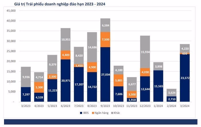 Đáng chú ý, VBMA cũng cho biết, tổng giá trị trái phiếu đến hạn trong tháng 4 này là 14.540 tỷ đồng. Bất động sản và ngân hàng là hai nhóm ngành có giá trị đến hạn lớn nhất, lần lượt là 4.500 tỷ đồng và 5.300 tỷ đồng, chiếm 31% và 36% giá trị đến hạn.