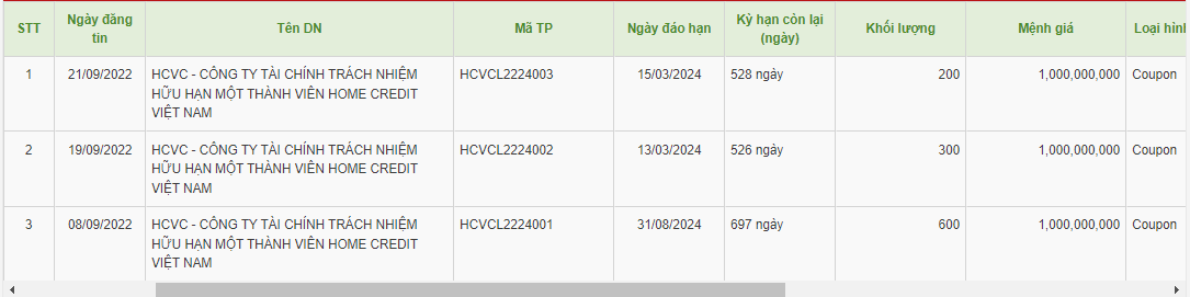 Tính từ 31/8/2022, Home Credit đã phát hành tổng cộng 1.100 tỷ đồng trái phiếu, thông tin chi tiết về các lô trái phiếu này không được công bố.