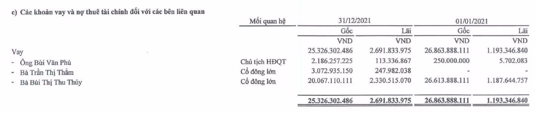 Đáng chú ý, để duy trì hoạt động kinh doanh, PVR đã gia tăng vay của chính cổ đồng trong công ty với số tiền lên tới 25.3 tỷ đồng. Trong đó, khoản vay lớn nhất của bà Bùi Thị Thu Thủy hơn 20 tỷ đồng, Bà Trần Thị Thắm – Cổ đông lớn cho vay hơn 3 tỷ đồng và ông Bùi Văn Phú – Chủ tịch HĐQT cho vay 2.2 tỷ đồng, Bà Trần Thị Thắm.