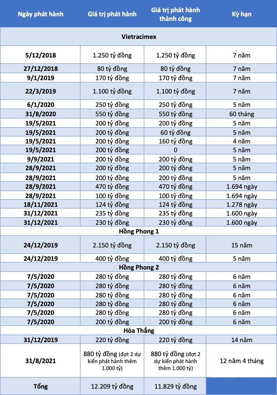 Bên cạnh đó, các pháp nhân lõi Vietracimex, các thành viên của tập đoàn này cũng rất tích cực trên thị trường trái phiếu.