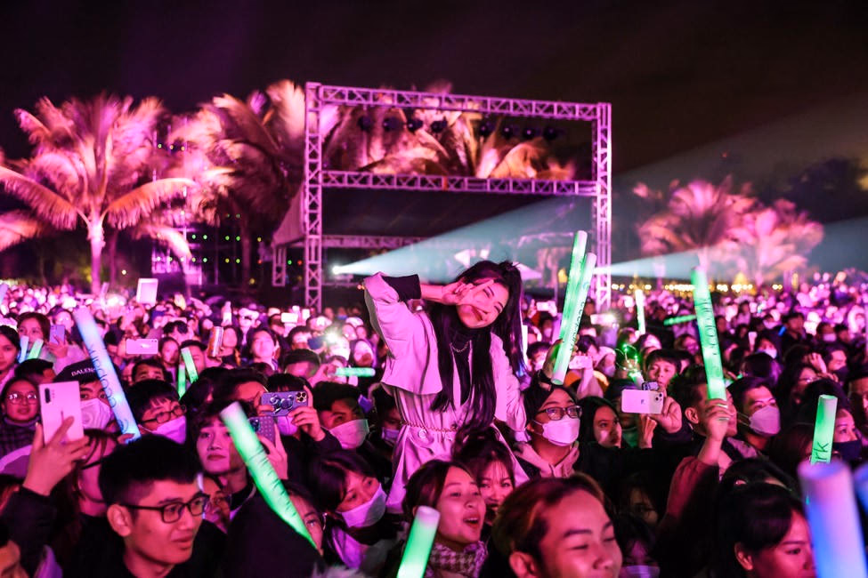 Trước khoảnh khắc giao thừa, dàn nghệ sĩ trên sân khấu cùng cả biển người cùng đồng thanh đếm ngược chào đón năm mới.