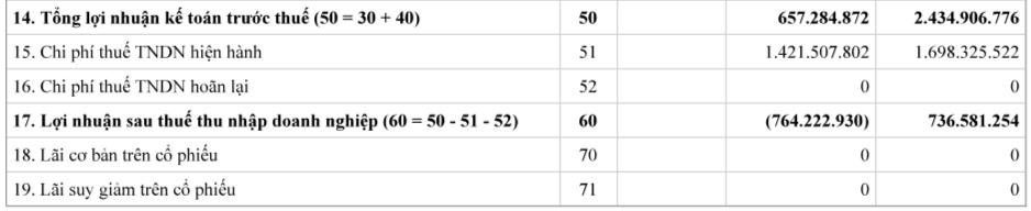 Tổng lợi nhuận kế trước thuế là hơn 442,6 triệu đồng. Sau khi trừ đi các chi phí, kết thúc năm 2023 công ty báo lãi sau thuế hơn 279,7 triệu đồng, giảm mạnh tới 92,4% so với cùng kỳ năm 2022 (báo lãi sau thuế hơn 3,6 tỷ đồng).