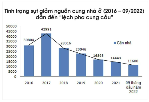 Hiệp hội nhận thấy, 09 tháng đầu năm 2022, thị trường bất động sản tuy đã có dấu hiệu dần phục hồi trở lại với nguồn cung 11.600 căn nhà, tăng 70,5% so với 09 tháng đầu năm 2021, nhưng số lượng nhà ở này cũng chỉ bằng khoảng 36% so với cùng kỳ năm 2017 chưa đáp ứng nhu cầu nhà ở rất lớn của thị trường và nhìn tổng thể thì thị trường bất động sản đang trong giai đoạn cực kỳ khó khăn, căng thẳng.