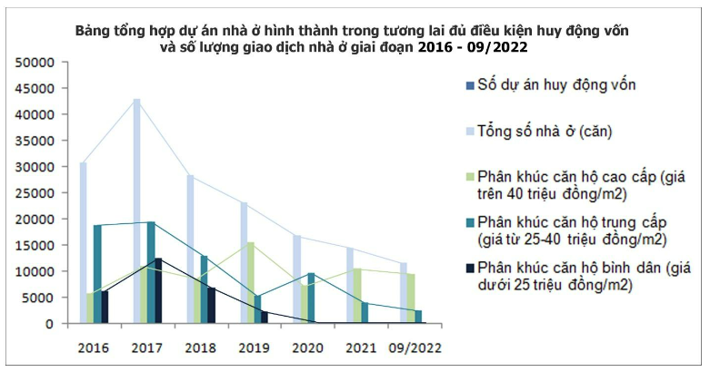 Trong lúc nhà ở cao cấp ngày càng chiếm tỷ lệ áp đảo, năm 2020 có 7.114 căn nhà cao cấp, chiếm 42,1%, năm 2021 có 10.404 căn nhà cao cấp, chiếm 72%, 09 tháng đầu năm 2022 có 9.305 căn nhà cao cấp, chiếm đến 80,2%.