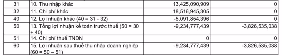 Tổng lợi nhuận kế toán trước thuế của công ty trong năm 2023 tiếp tục âm hơn 3,8 tỷ đồng.