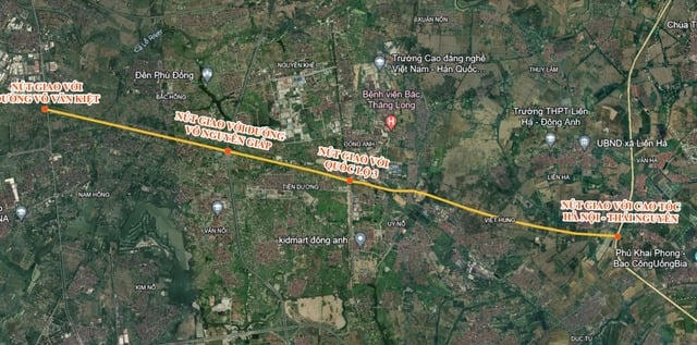 Điểm đầu của con đường này đặt tại nút giao với đường cao tốc Hà Nội – Thái Nguyên; điểm cuối tại nút giao với đường Võ Văn Kiệt (xã Nam Hồng, huyện Đông Anh). Đường được xây dựng với quy mô 6 làn xe; đường phố gom chủ yếu (cấp khu vực) quy mô 3 làn xe.