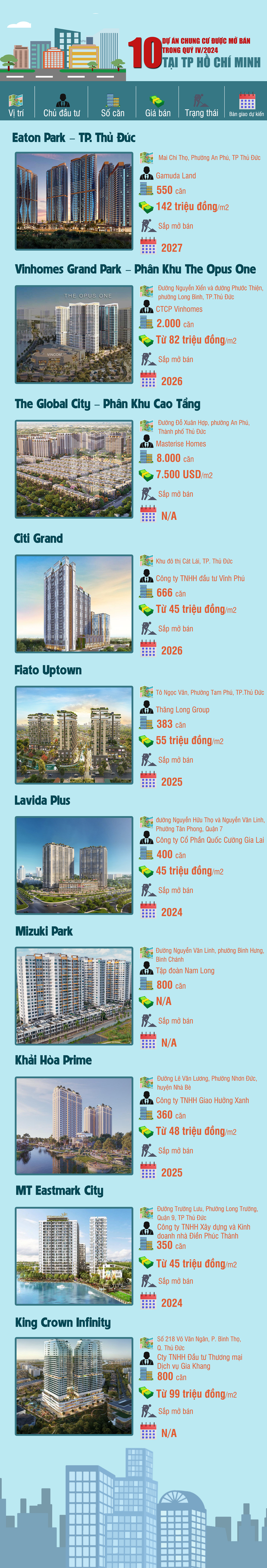 [Infographic] 10 dự án chung cư được mở bán trong quý IV/2024 tại TP HCM
