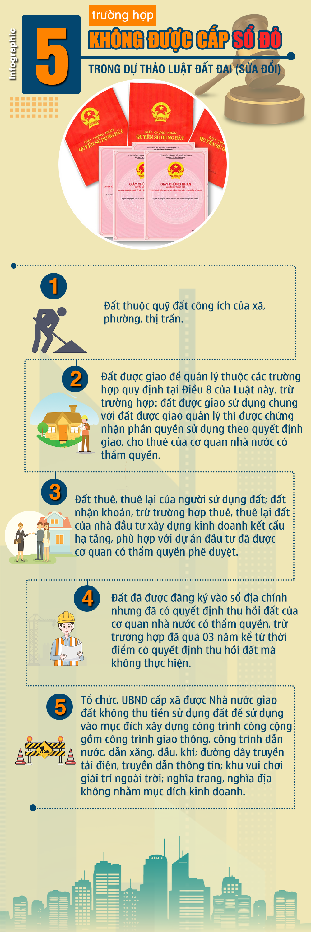 [Infographic] 5 trường hợp không được cấp sổ đỏ trong Dự thảo Luật Đất đai (sửa đổi)