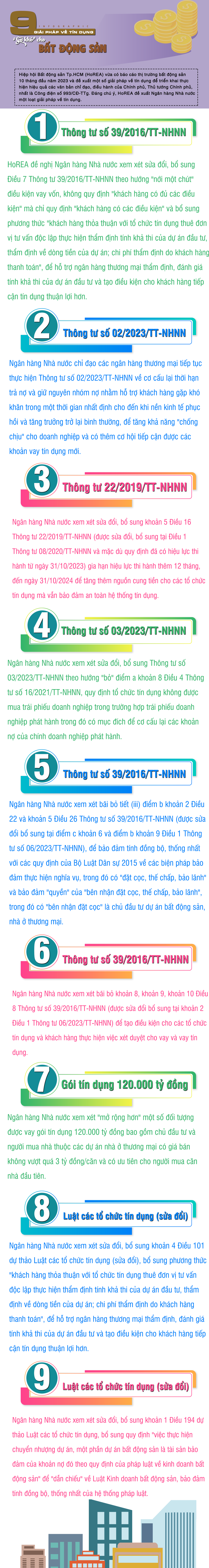[Infographic] 9 giải pháp về tín dụng “gỡ khó” cho thị trường bất động sản Hiệp hội Bất động sản TPHCM (HoREA) đã đề xuất Ngân hàng Nhà nước một loạt giải pháp về tín dụng nhằm gỡ khó cho bất động sản. Thứ Tư 27/12/2023 09:48 (GMT+7) An Nhiên