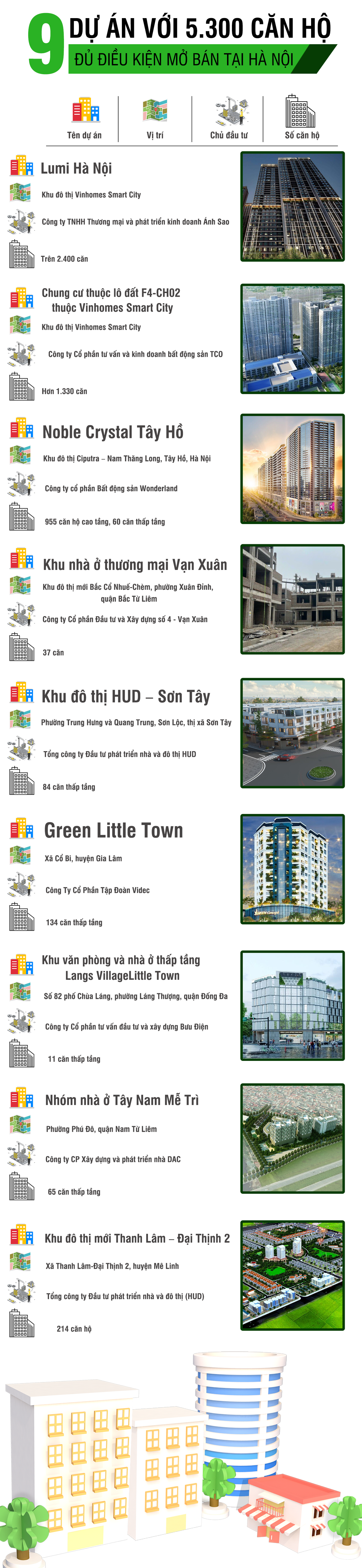 [Infographic] Chi tiết 9 dự án với hơn 5.300 căn hộ đủ điều kiện mở bán tại Hà Nội