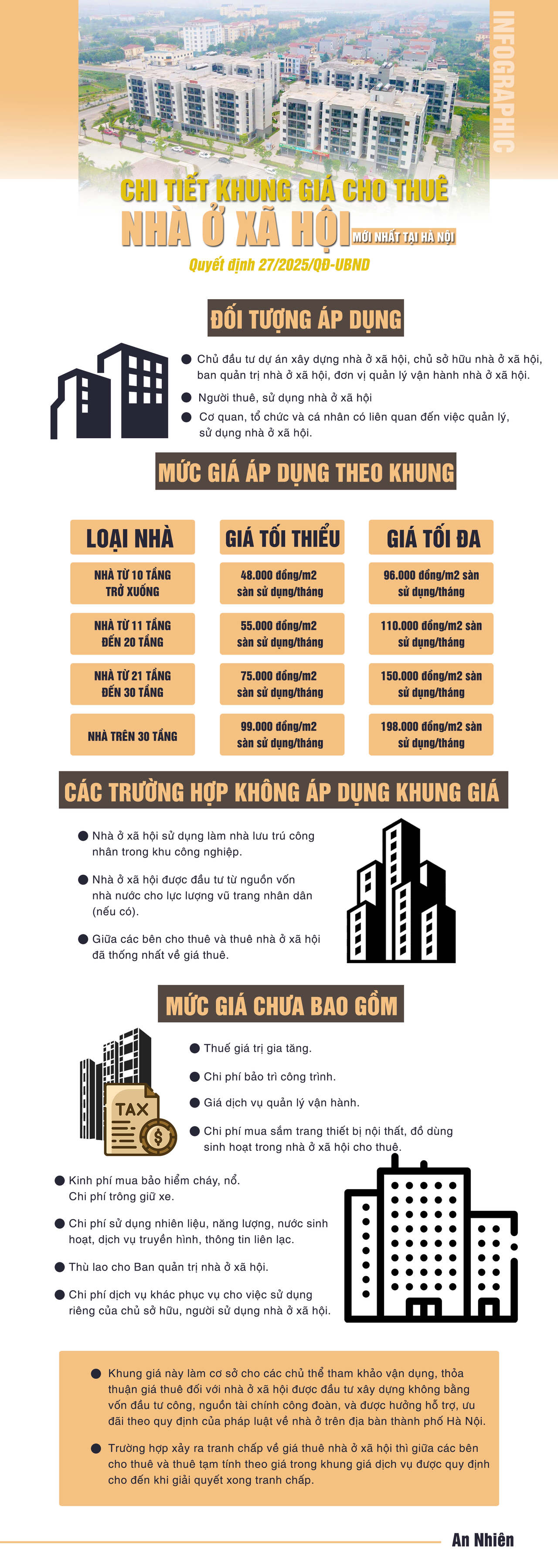 [Infographic] Chi tiết khung giá cho thuê nhà ở xã hội tại Hà Nội mới nhất