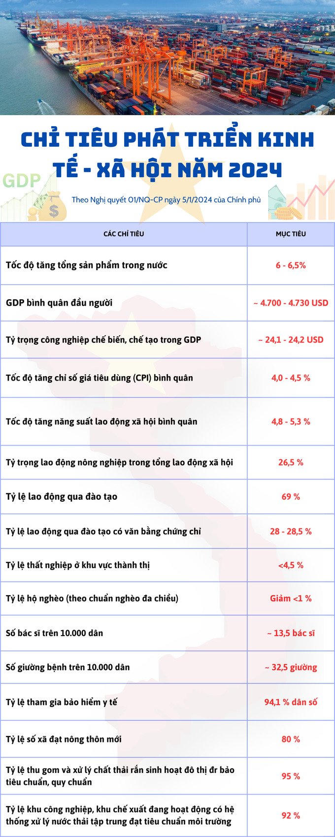 [Infographic] Chỉ tiêu phát triển kinh tế - xã hội năm 2024