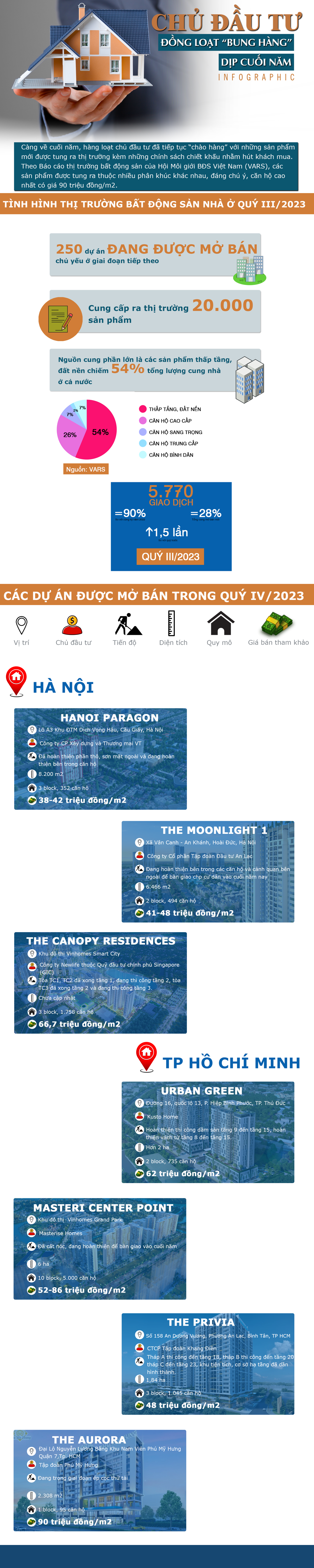 Càng về cuối năm, hàng loạt chủ đầu tư đã tiếp tục “chào hàng” với những sản phẩm mới được tung ra thị trường kèm những chính sách chiết khấu nhằm hút khách mua. Theo Báo cáo thị trường bất động sản của Hội Môi giới BĐS Việt Nam (VARS), các sản phẩm được tung ra thuộc nhiều phân khúc khác nhau, đáng chú ý, căn hộ cao nhất có giá 90 triệu đồng/m2.