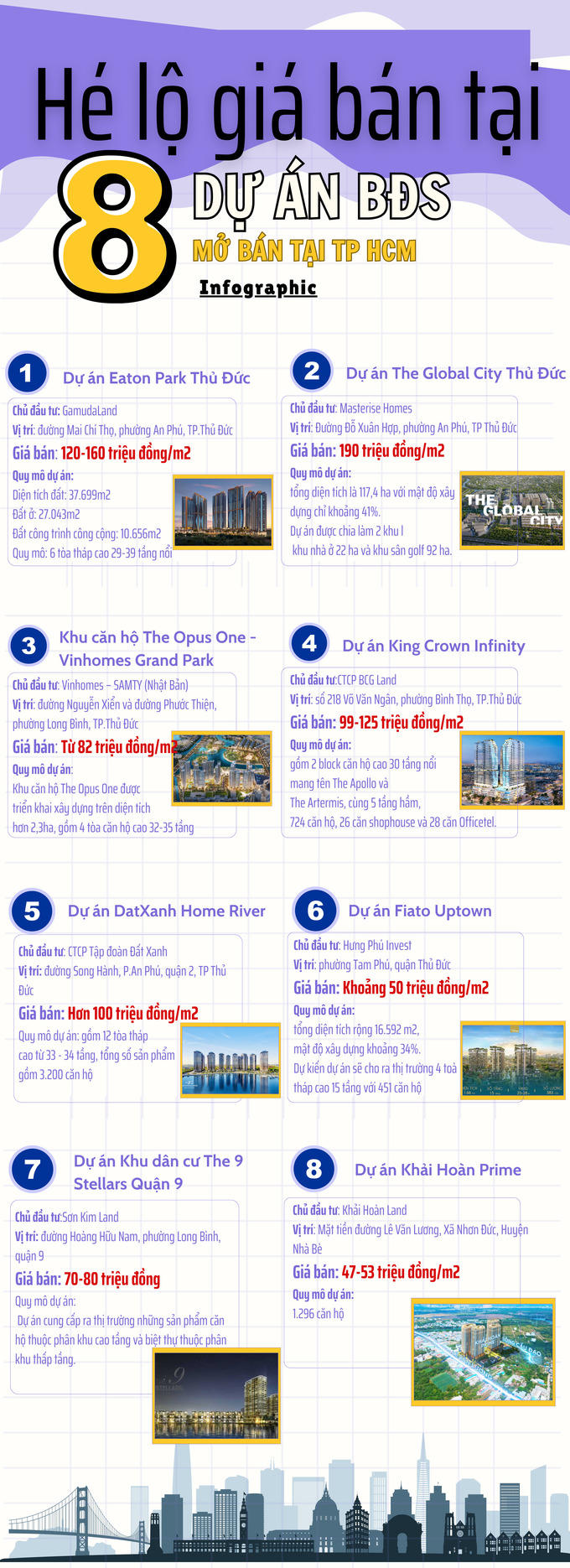 Infographic: Hé lộ giá bán tại 8 dự án mở bán tại TP HCM