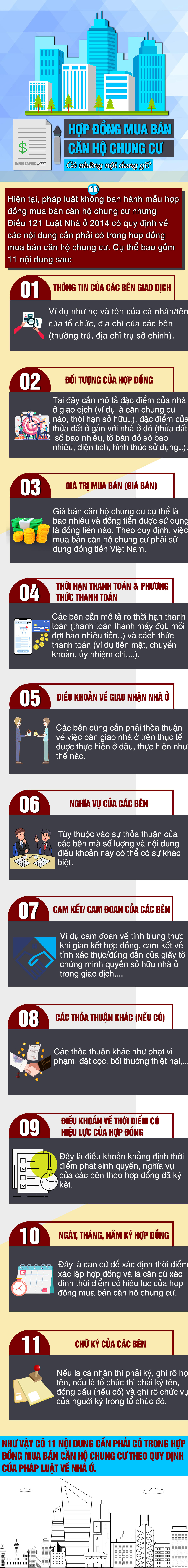 [Infographic] Hợp đồng mua bán căn hộ chung cư có những nội dung gì?