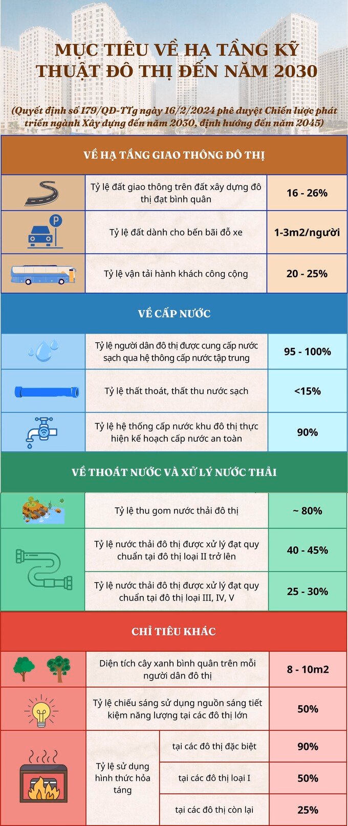 [Infographic] Mục tiêu đến năm 2030 của ngành xây dựng về hạ tầng kỹ thuật đô thị