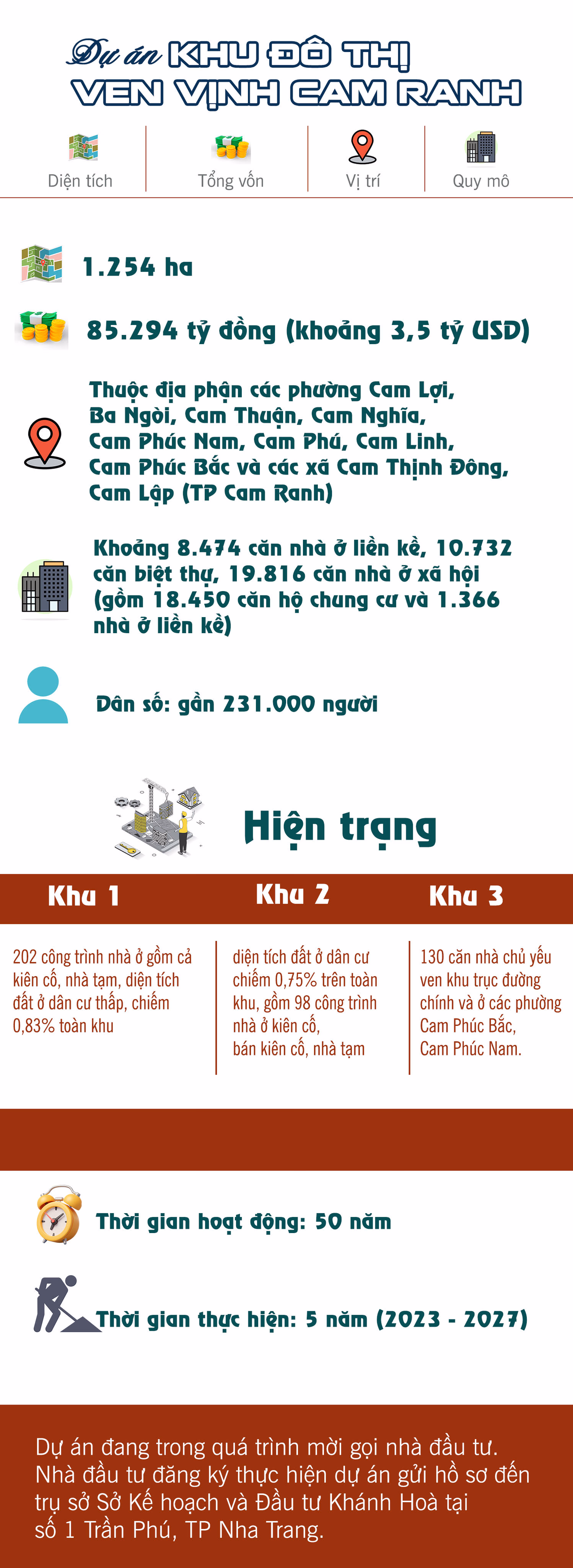 [Infographic] Quy mô “khủng” của dự án khu đô thị ven Vịnh Cam Ranh hơn 3,5 tỷ USD Được thực hiện trên khu đất 1.300 ha, dự án Khu đô thị ven Vịnh Cam Ranh có tổng chi phí thực hiện là 85.294 tỷ đồng (khoảng 3,5 tỷ USD). Thứ Tư 26/04/2023 15:51 (GMT+7) An Nhiên