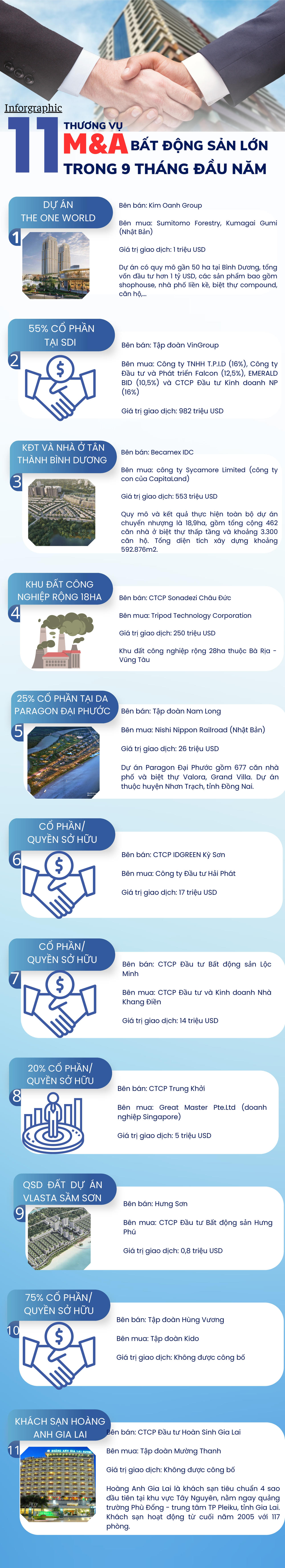 Inforgraphic: 11 thương vụ M&A bất động sản lớn trong 9 tháng đầu năm