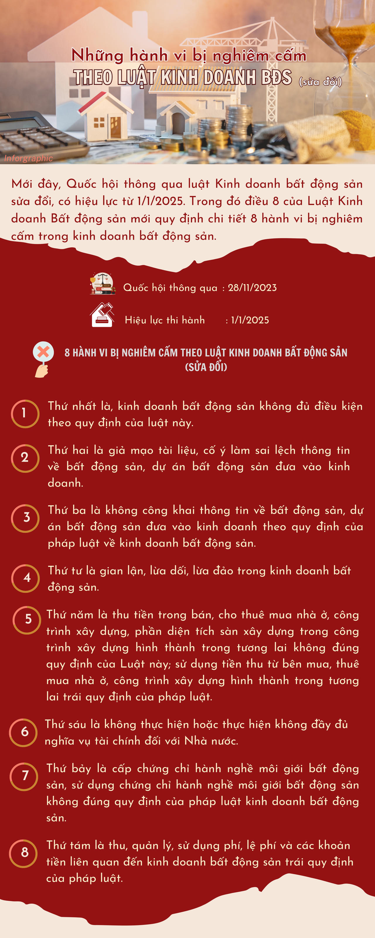 [Inforgraphic] Điểm những hành vi bị nghiêm cấm theo Luật Kinh doanh Bất động sản (sửa đổi)