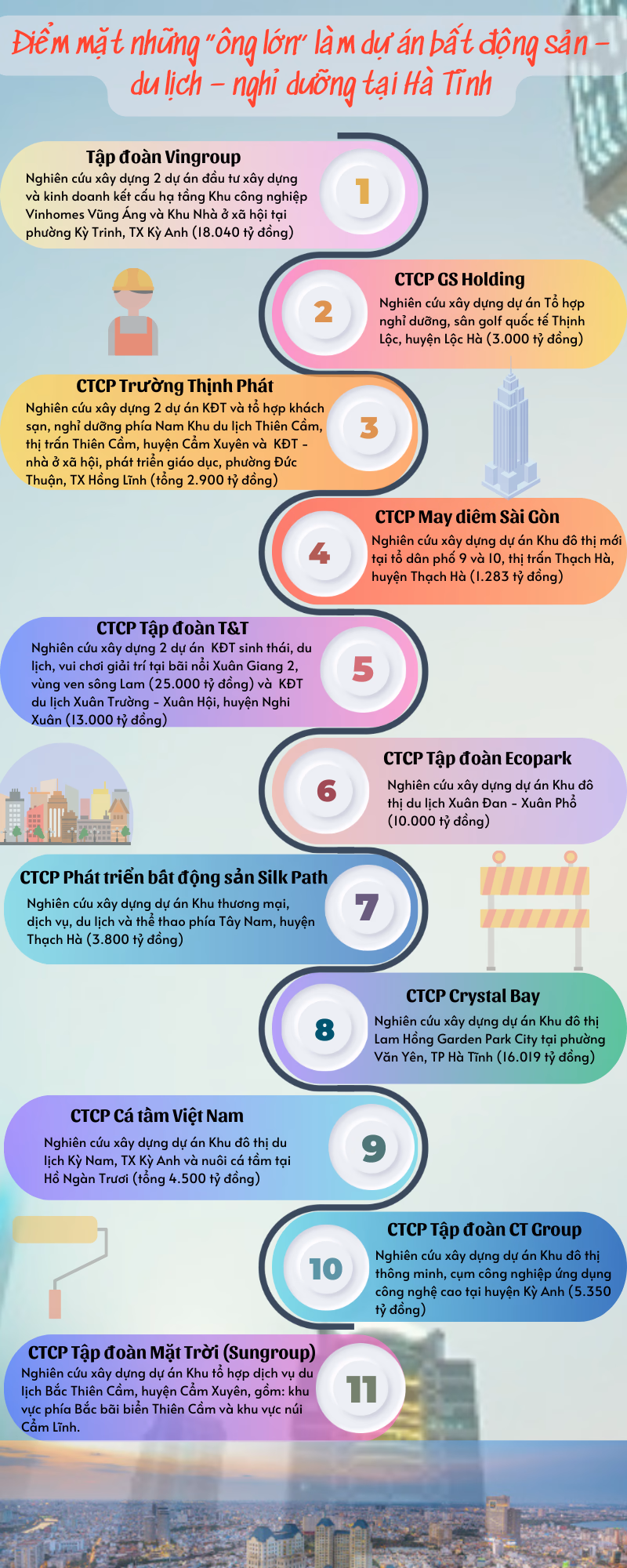 [Inforgraphic] Những “ông lớn” làm dự án bất động sản - du lịch - nghỉ dưỡng tại Hà Tĩnh