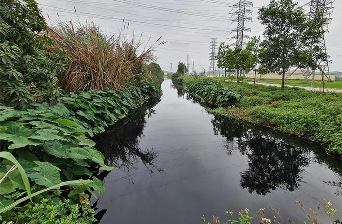 Một con kênh đen kịt bốc mùi trên địa bàn huyện Tiên Du, Bắc Ninh.
