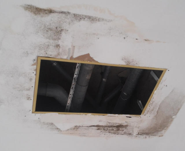 Trần thạch cao bị bung cả mảng lớn, nước chảy lênh láng do thi công ống nước không đảm bảo.