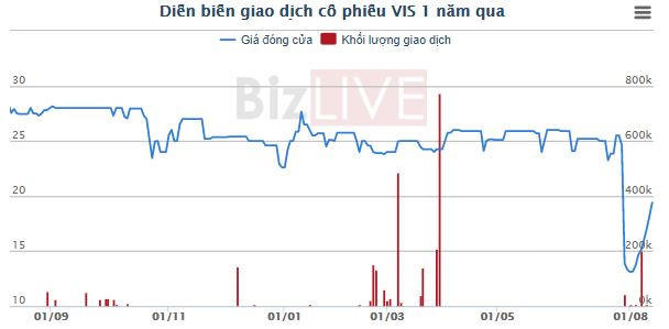 Trên thị trường chứng khoán, sau hơn 1 năm trượt dần với biên độ hẹp, cổ phiếu VIS bất ngờ biến động mạnh trong khoảng 1 tháng trở lại đây. Cổ phiếu này bắt đầu lao dốc từ đầu tháng 7 qua đó rơi xuống vùng đáy dưới 13.000 đồng/cổ phiếu trước khi quay đầu tăng mạnh trong 2 tuần giao dịch vừa qua với nhiều phiên tăng kịch biên độ.